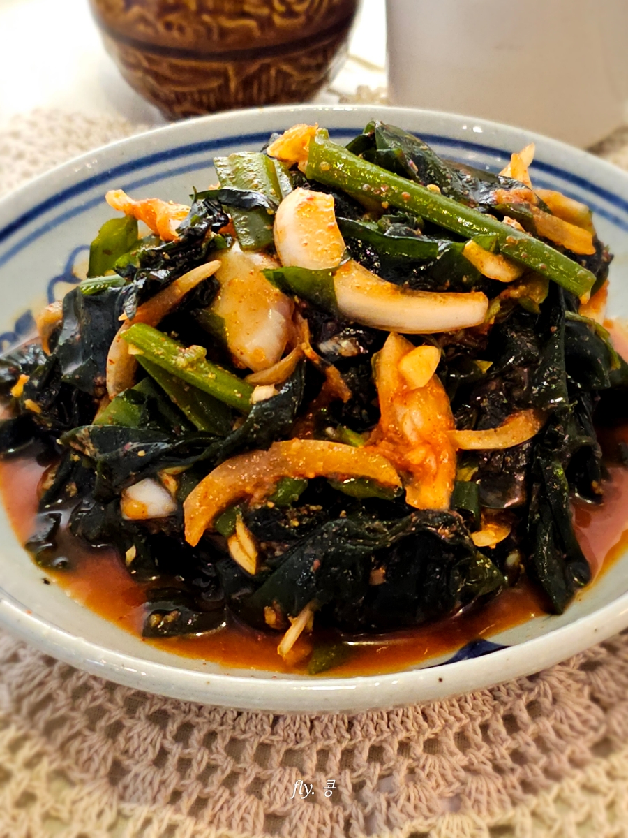 - 생미역은 소금기를 제거하고 물에 씻어 준비한다.
